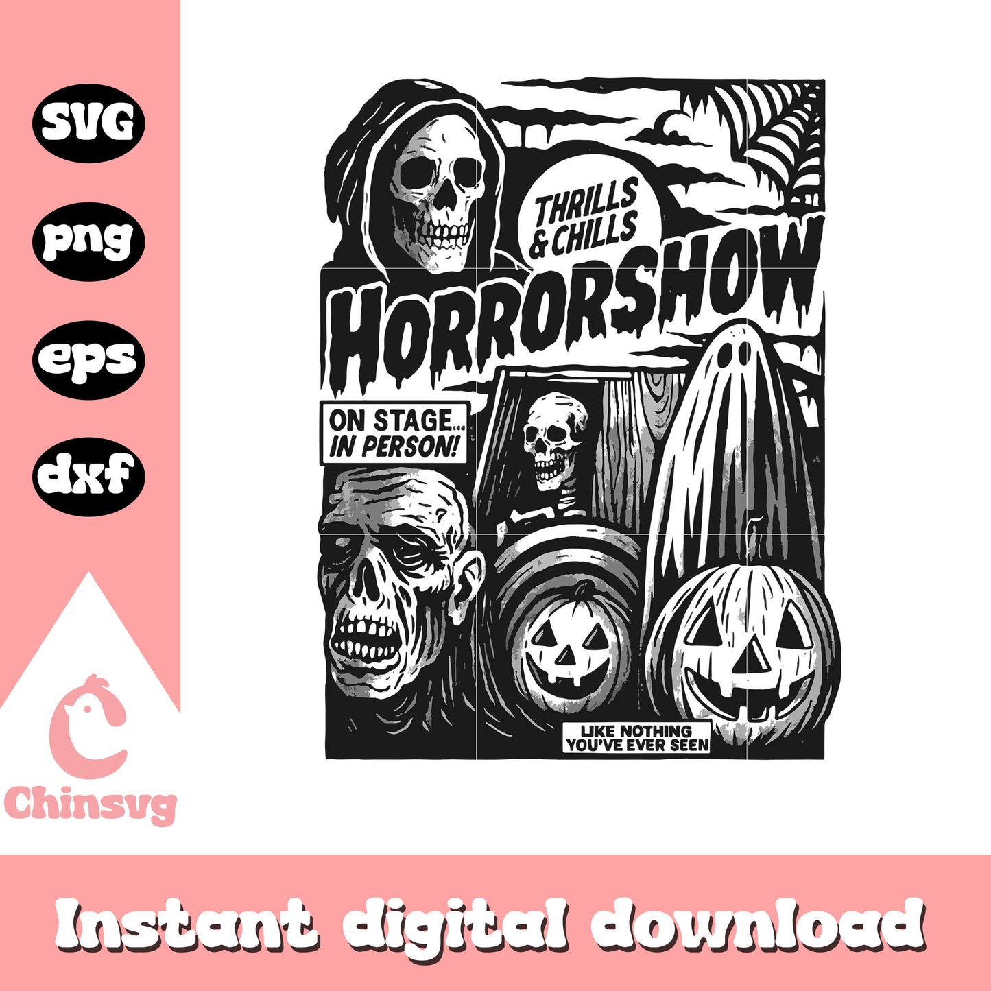 Thrills and chills horrorshow halloween design svg, horrorshow svg