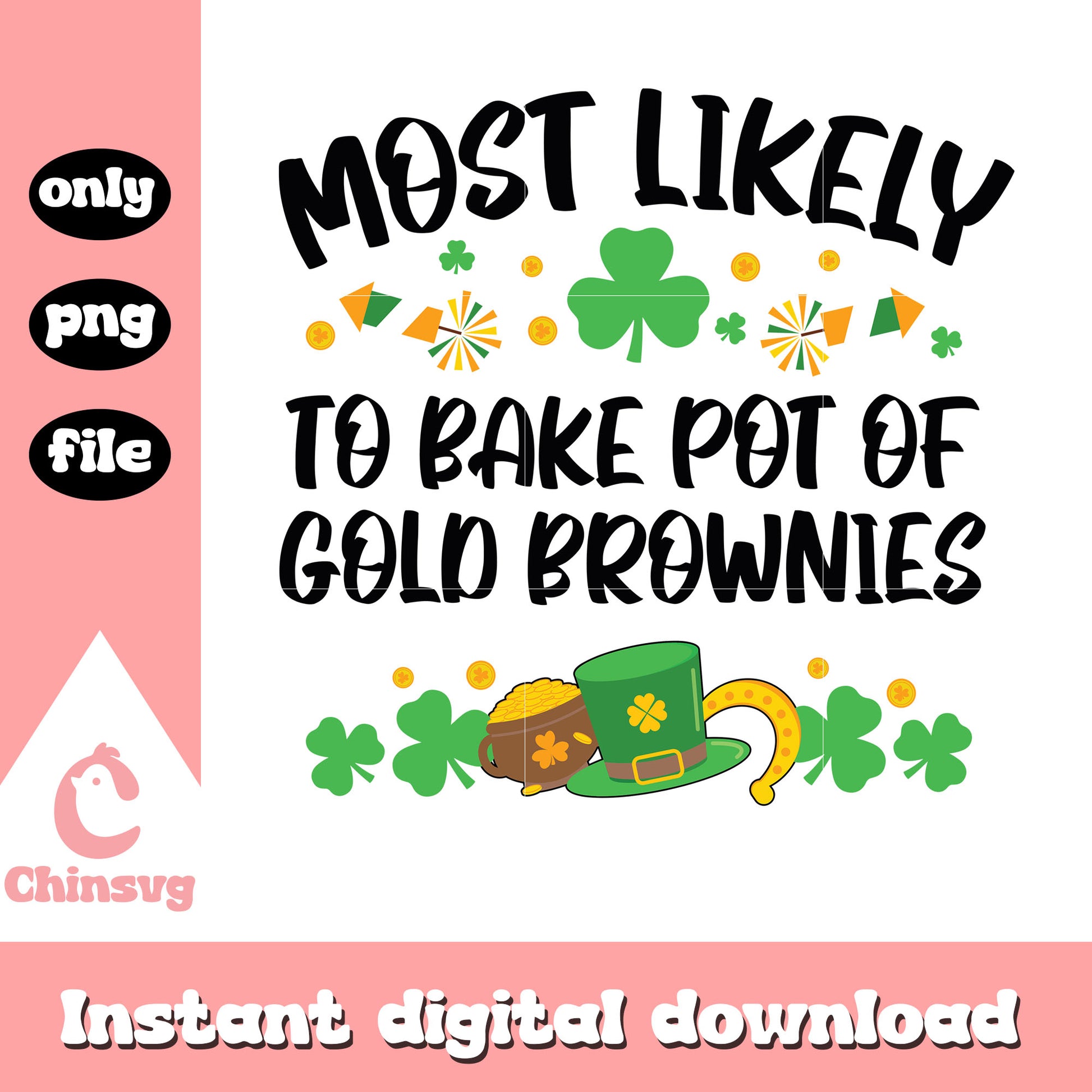 To bake pot of gold brownies png is a product of our St patrick's day collection. Packed with festive designs, this collection features lucky clovers, leprechauns, rainbows, hats, mugs of beer, and all things green and gold. Perfect for crafting custom decorations, apparel, and gifts, these high-quality files are ideal for adding a touch of Irish cheer to your creative projects.