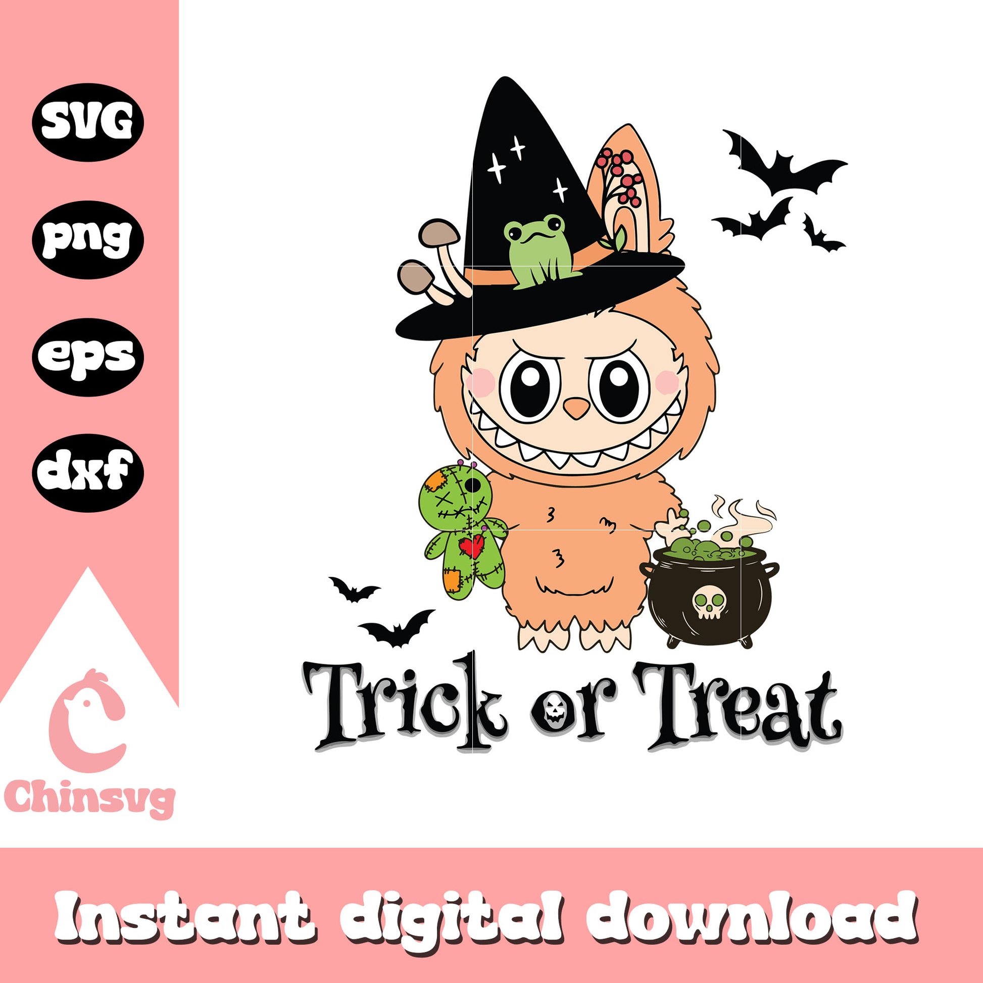 Trick or treaat witch labubu halloween svg, labubu costume svg