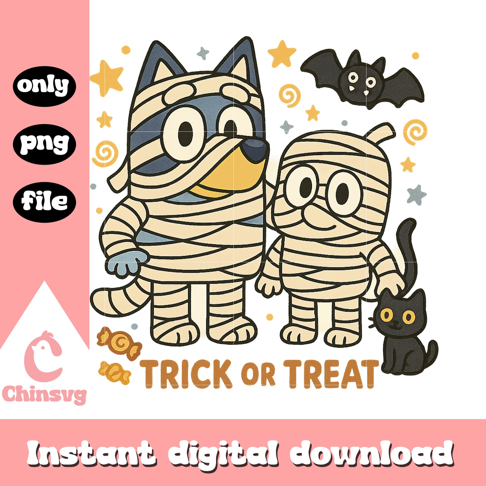 Trick or treat mummy halloween design png, mummy halloween costume png