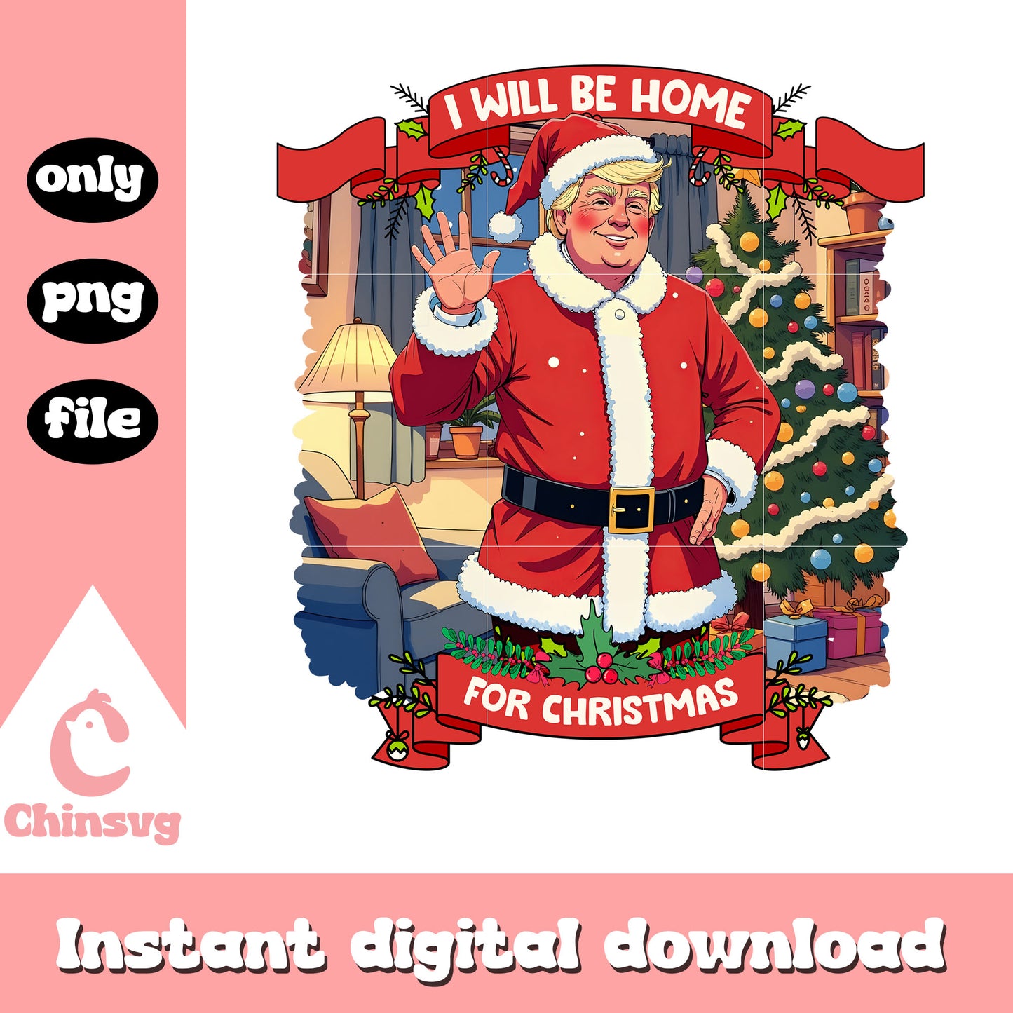 Trump santa i will be home design png is a product of our christmas collection. Perfect for DIY enthusiasts, crafters, and designers, this collection offers a wide range of festive elements like Christmas trees, Santa Claus, snowflakes, ornaments, reindeer, and more. Whether you’re designing greeting cards, personalized gifts, or home decor, these high-quality designs will help you create something truly special this Christmas.