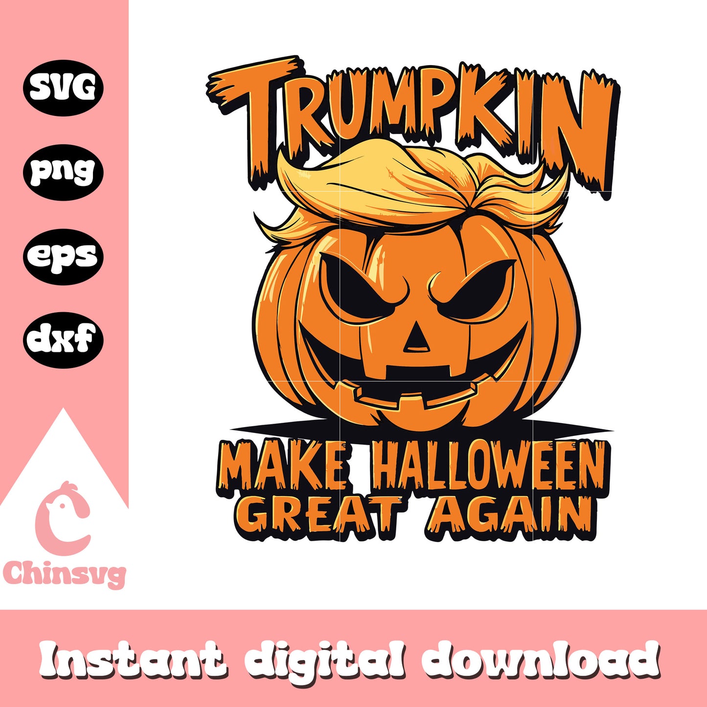 Trumpkin make halloween great again design svg is a product of our Halloween collection. Whether you're crafting spooky decorations, designing party invitations, or creating unique apparel, this collection is packed with high-quality, detailed graphics that perfectly capture the spirit of Halloween. From pumpkins, ghosts, bats, to witches, skeletons, and more, this set offers endless possibilities for your creative ideas.