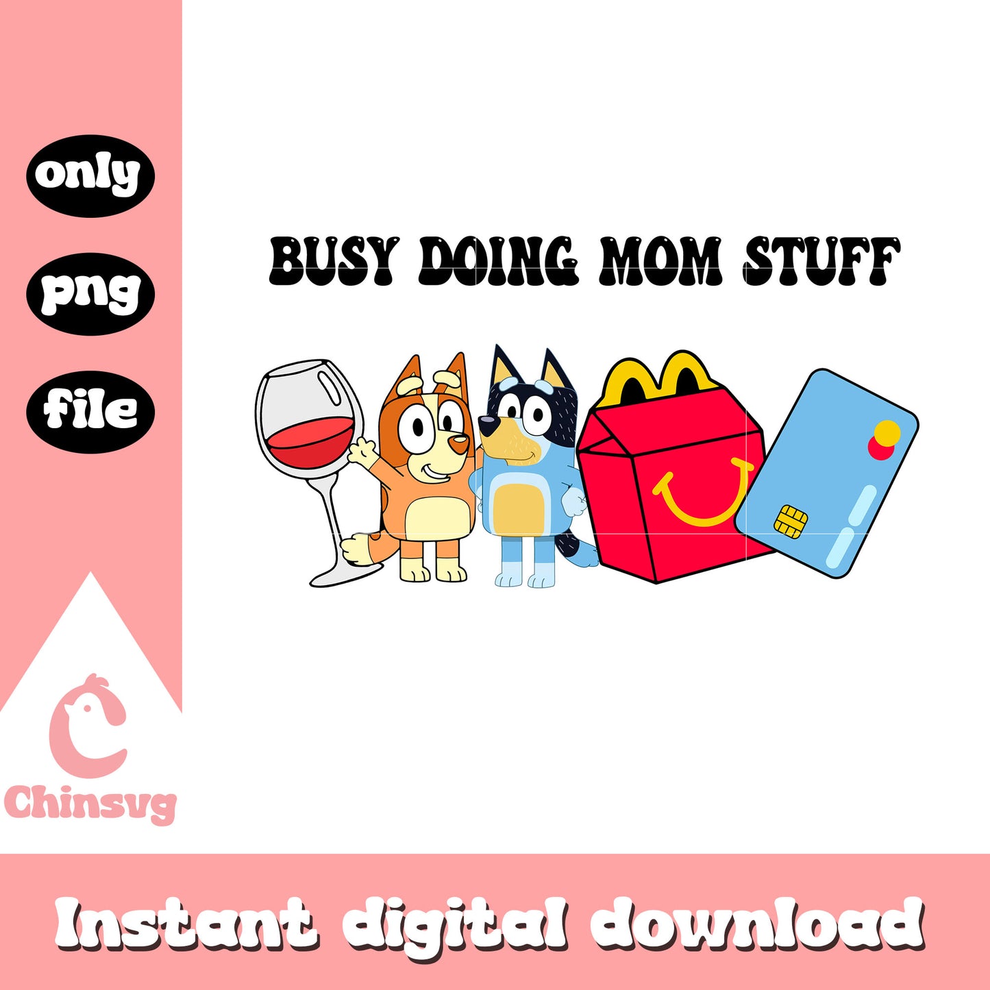 Wine busy doing mom stuff png, bingo bluey png, mom stuff png