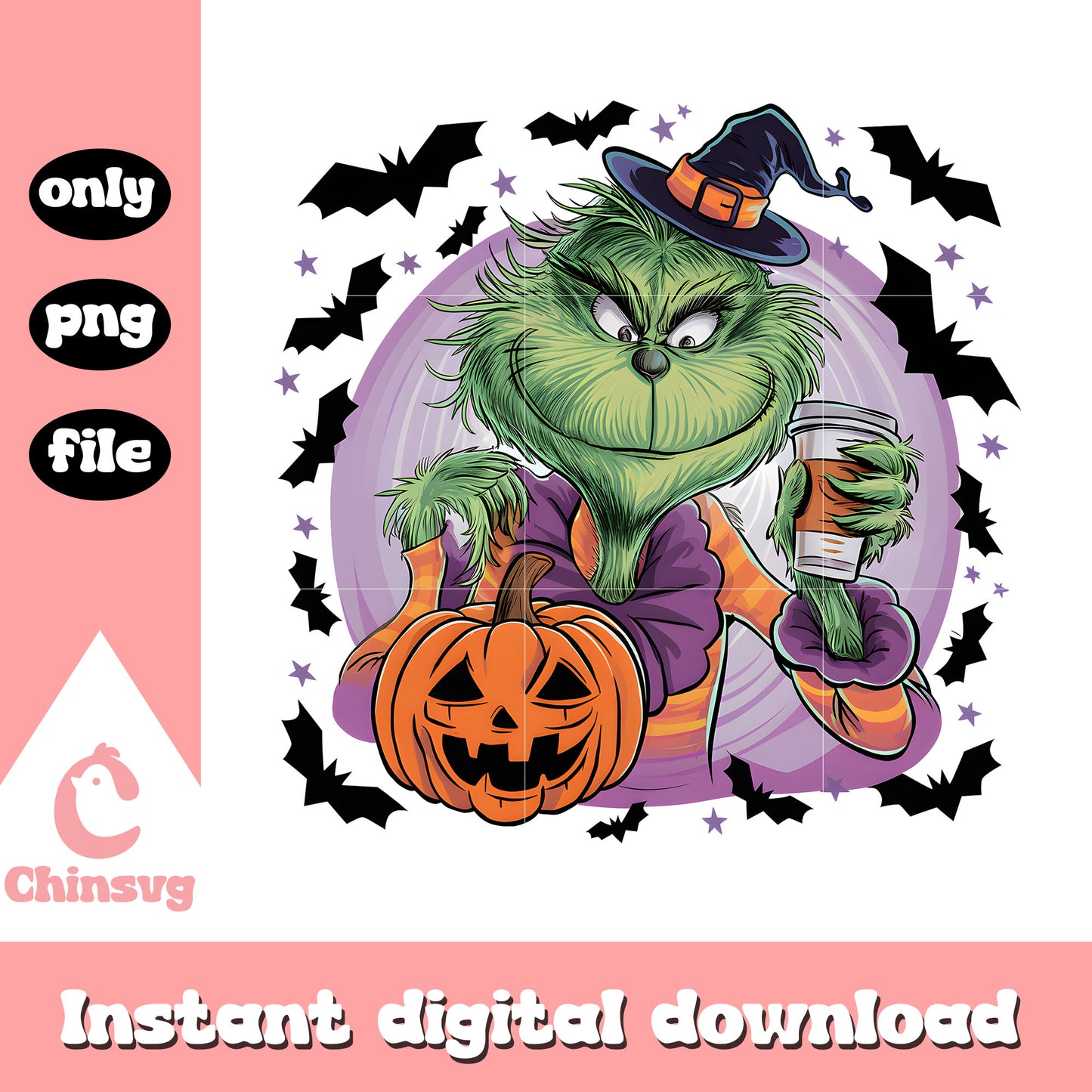 Witch grinch happy halloween drawing design png, grinch halloween png