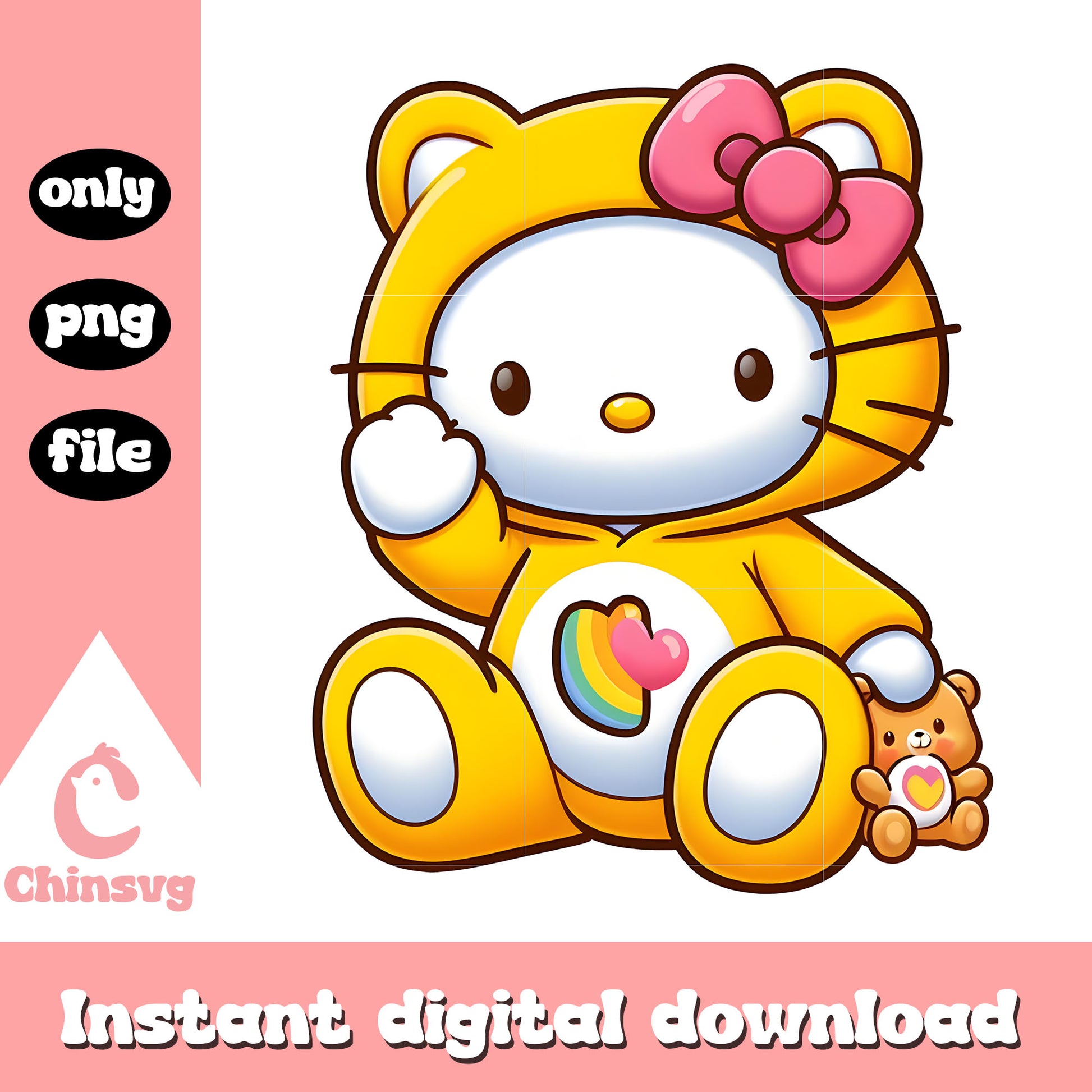 Yellow care bears hello kitty png is a product of our hello kitty collection. Featuring the beloved character and her charming world, this collection is perfect for fans, crafters, and designers of all ages. Whether you're creating party decorations, custom gifts, or digital artwork, these high-quality designs will make every project extra cute and memorable.