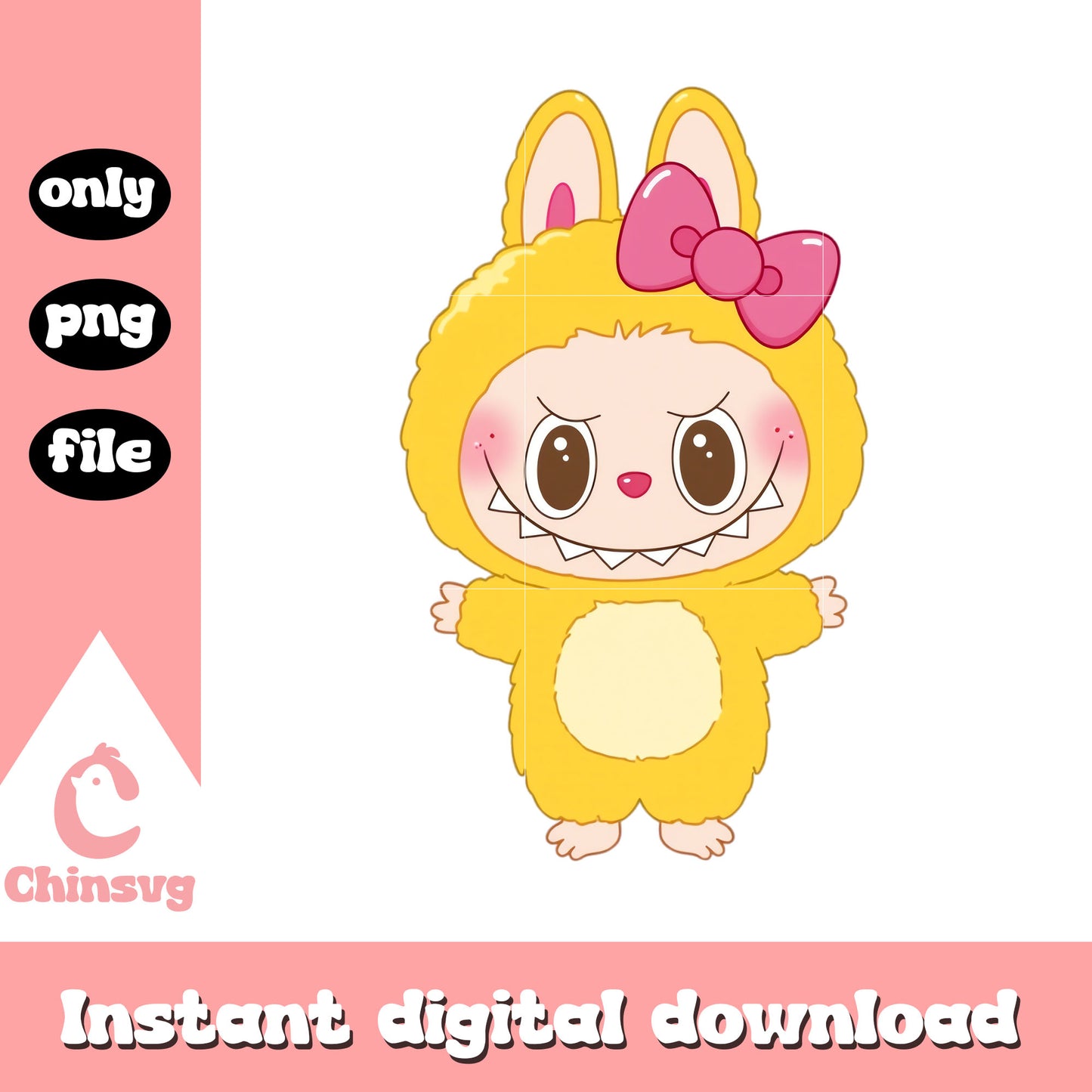 Yellow labubu bow doll design png, labubu toy png, labubu png