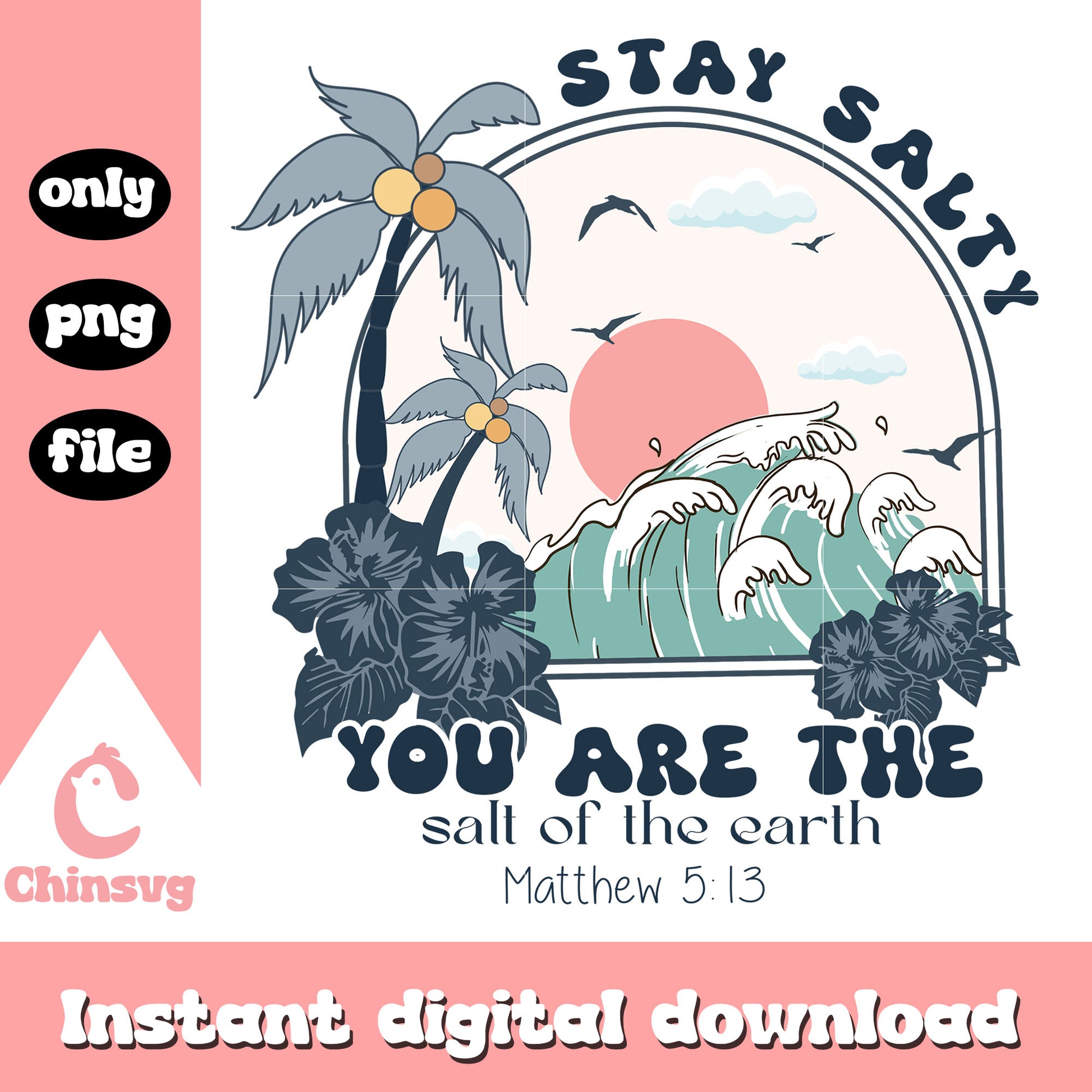 You are the salt of the earth png is a product of our Summer Vibe collection. Embrace the warmth, colors, and joy of the season with our Summer Vibe SVG Collection! This fun-filled set features tropical elements, beachy graphics, and playful quotes that capture the carefree spirit of summer. Perfect for t-shirts, tumblers, bags, party decor, and all your sunny-day crafts!