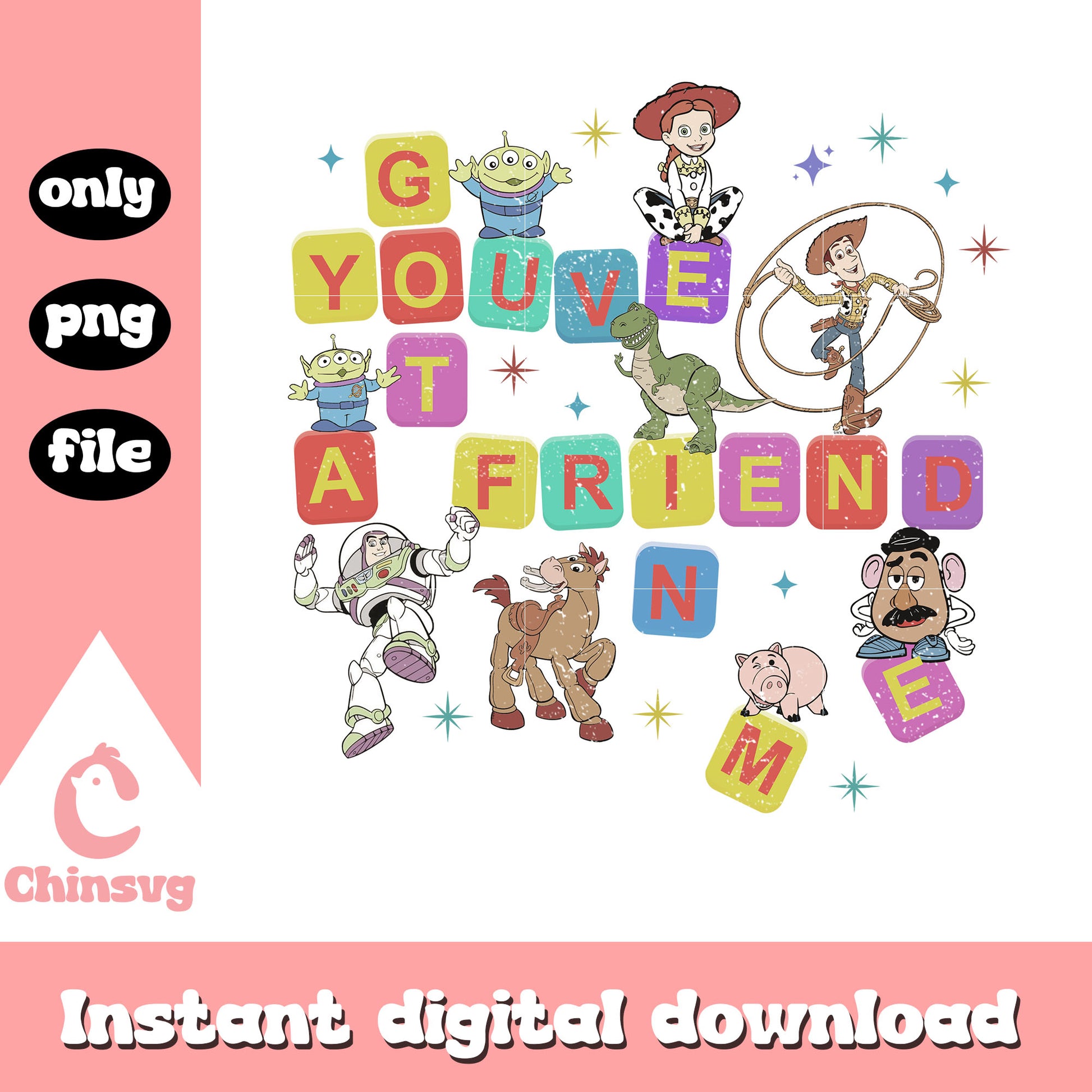 You've got a friend in me png is a product of our Disney collection. Perfect for Disney fans of all ages, this collection captures the charm and nostalgia of your favorite characters and magical worlds. Featuring a range of beloved characters, castles, magical icons, and whimsical designs, these files are ideal for creating everything from custom apparel to party decorations and personalized gifts.